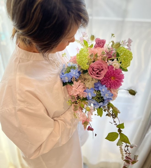 花屋勤務で子育てしながら、細く長くつづけてきた花仕事。可愛い花たちに囲まれ、ペットの動物さんと一緒に自分も成長しながら、まわりの方が幸せな想いになれますように。