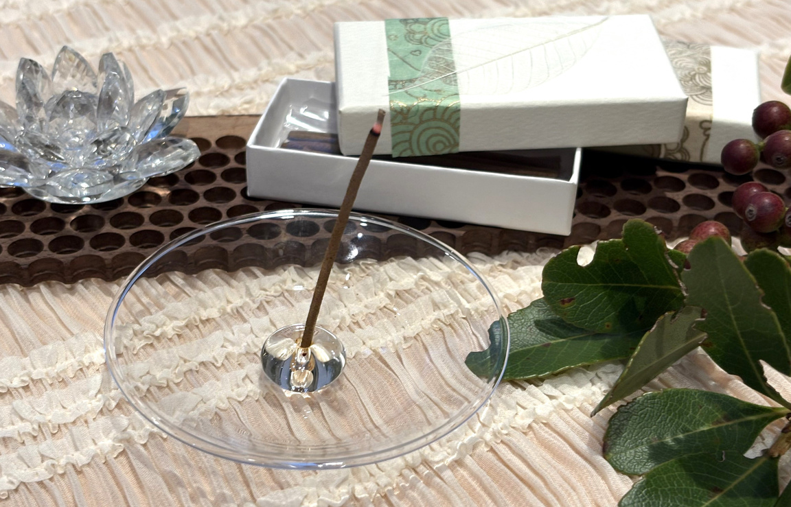 『天に通ず』といわれ、たちのぼる煙を見ていると心が落ち着きます。お香の薫りを聞いて、自身を優しく包み込む、ゆたかな時間を